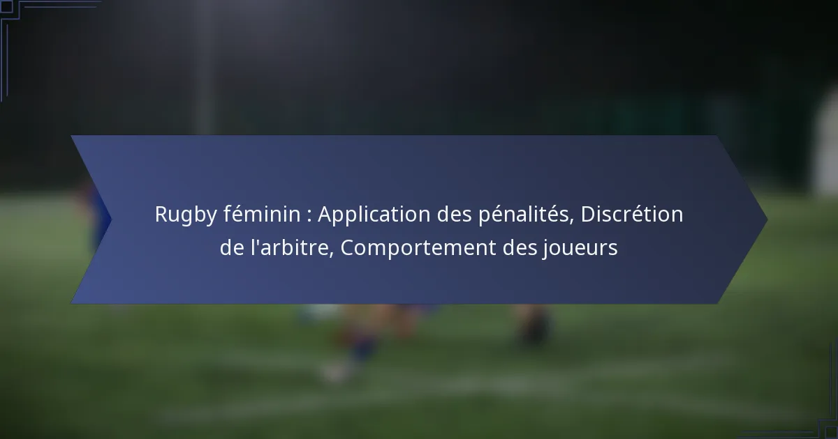 Dans le rugby féminin, comprendre l’application des pénalités est essentiel pour maintenir l’intégrité et le rythme du jeu. Les arbitres exercent leur discrétion pour prendre des décisions qui priorisent la sécurité des joueuses et le fair-play, tandis que le comportement des joueuses impacte directement l’application de ces pénalités. Une conduite antisportive peut entraîner des conséquences significatives, affectant non seulement le résultat du match mais aussi la dynamique de l’équipe et les réputations individuelles.